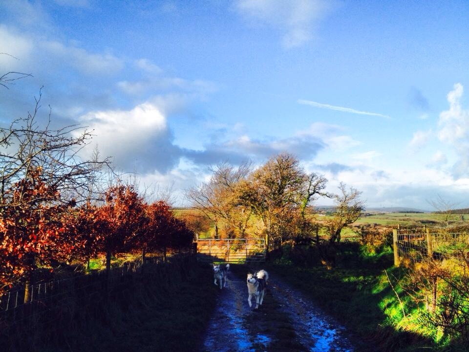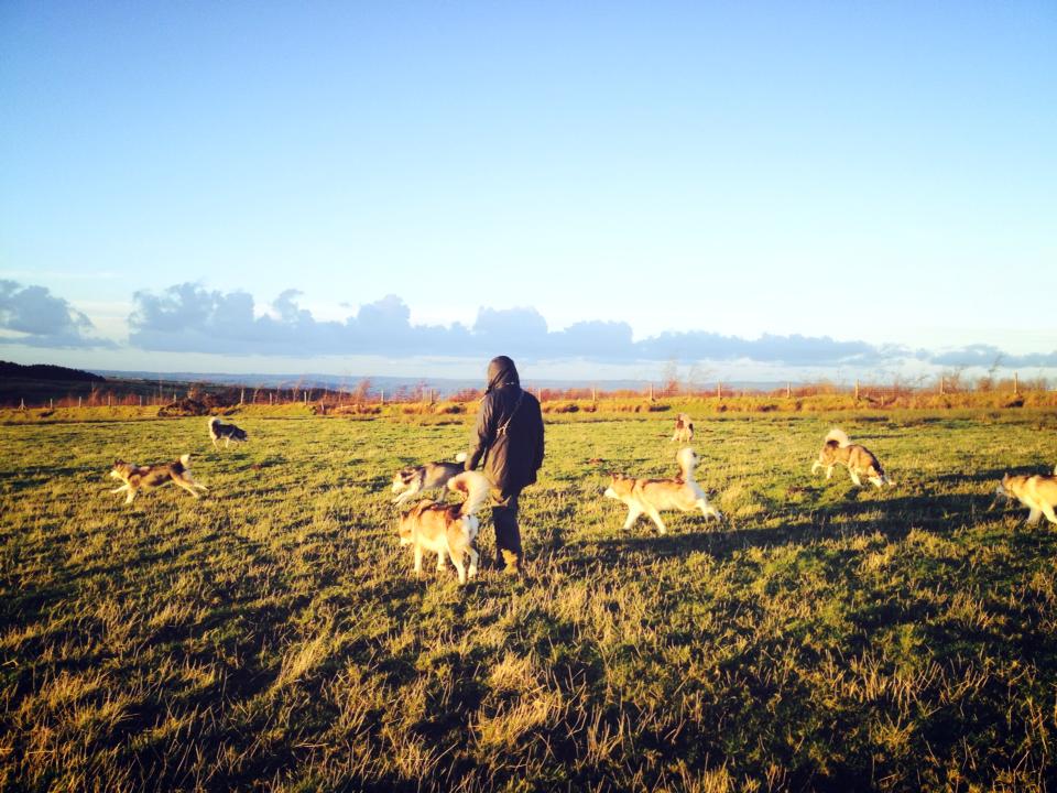 So I looked through the host pages in Wales on Helpx and a dog trainer Terry caught my eyes immediately. He was looking for a helper to clean kennels and walk the dogs. The pictures of him and his pack – Alaskan Malamutes and border collie are amazing so that I wrote him an email together with a pic of me and my dog. Terry replied my email quickly and accepted my request. I felt so lucky and grateful that he welcomed me to his home because this was my very first Helpx experience and I didn’t even have a review on my profile!