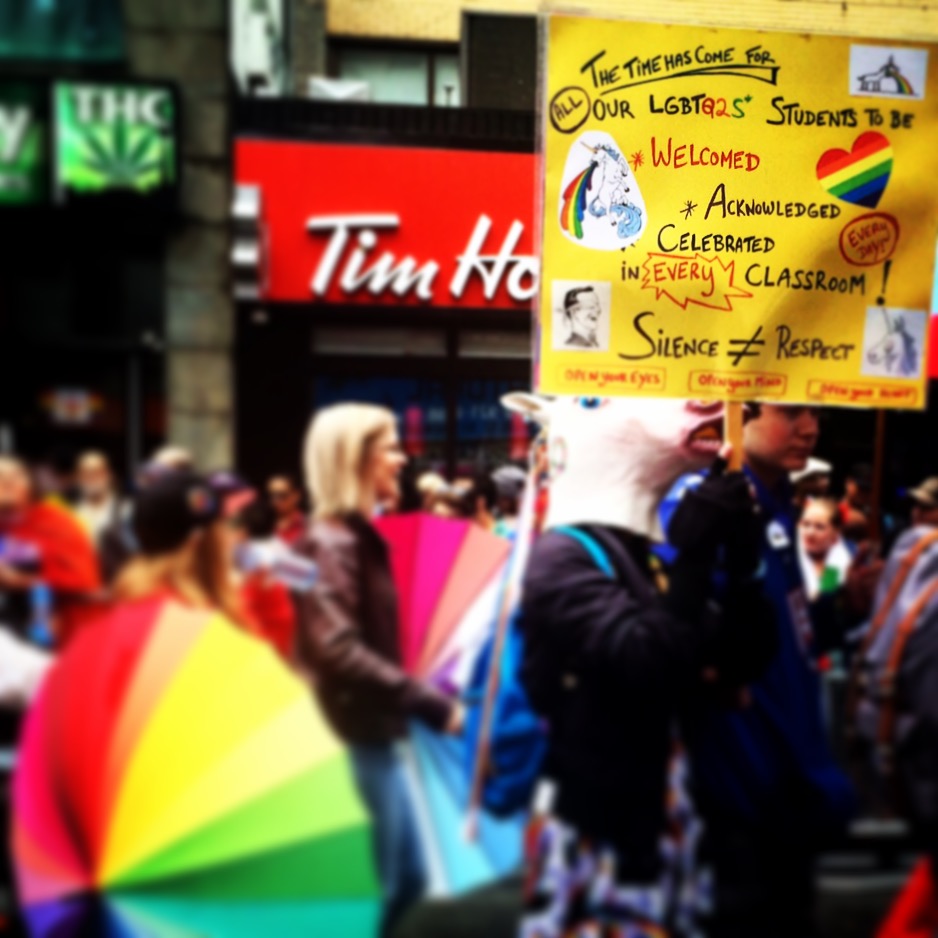 Among all, the most moving group in my eyes is Toronto PFLAG – Parents, Families and Friends of Lesbians and Gays. It is sad that there are still many parents who do not accept their children’s sexual orientation, thus, seeing a group of loving and supportive parents with signs that says “I love my gay son” and “love is a family value” really touched me deeply.