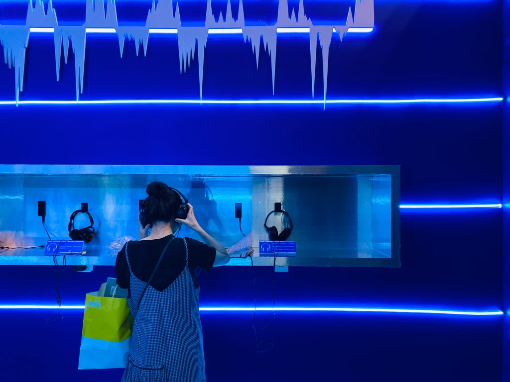 “I had no idea my footsteps sounded that loud for my dog,” a visitor surnamed Qi said after listening to the simulated sound in a headset. “Maybe I shouldn’t have brought him here tonight as the music is so loud.”