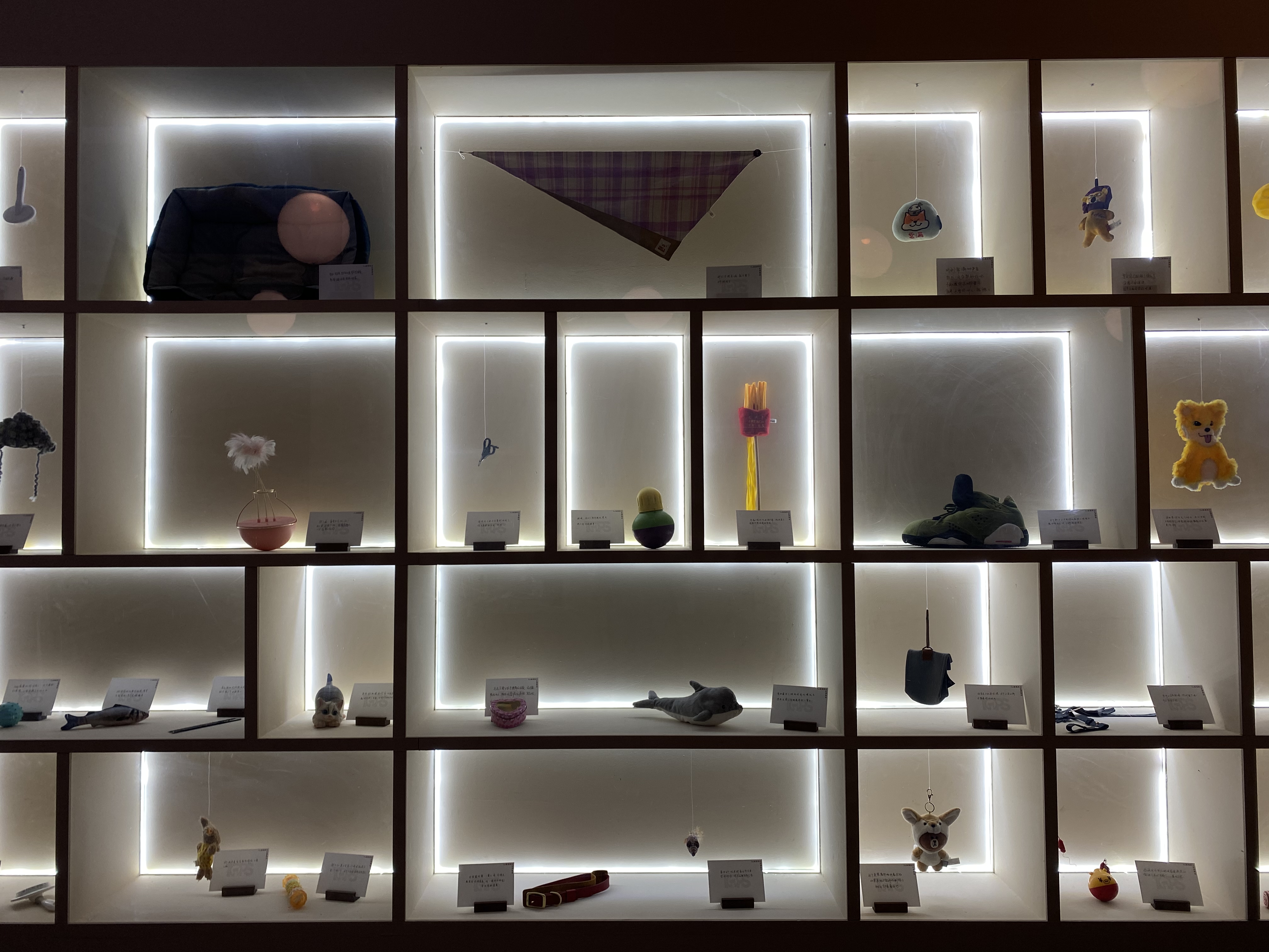 The pavilion at The One Pet Show (TOPS), held over the weekend in Shanghai, was a homage to some beloved pets that had died. Inside a glass cabinet were toys, combs, and other items that once belonged to the animals, left by their owners for display.
