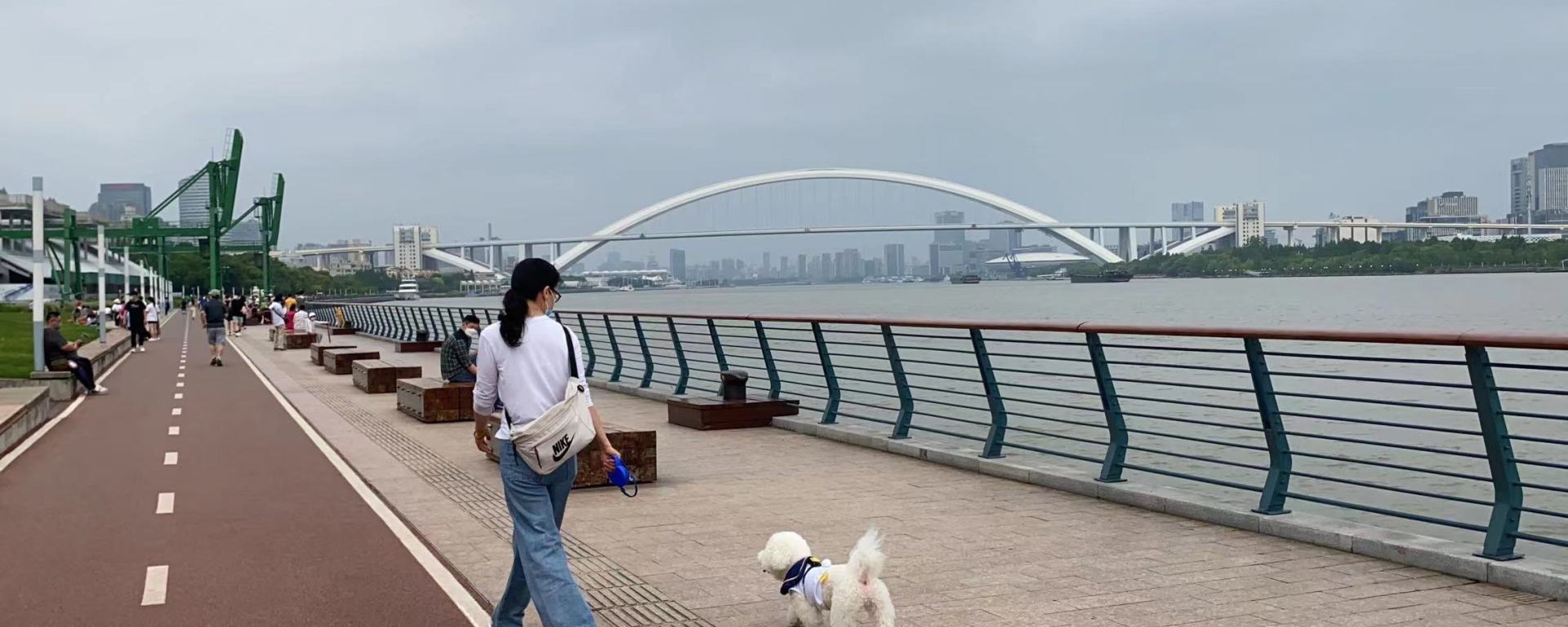 SHANGHAI — It’s Monday afternoon at a riverside park in Xuhui District. Some people are taking a walk along the walkway. Some are chatting on a bench and looking at ships on the river, playing saxophone, or doing tai chi. Some younger visitors are skateboarding and picnicking with friends. And other visitors are chasing each other and wrestling, sniffing each other’s butts, or barking at everyone who passes by.