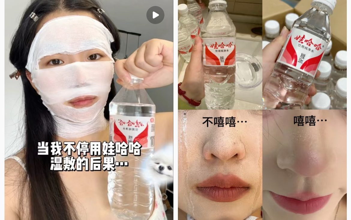 Influencers have latched onto Wahaha as an alternative to branded skincare products, with a string of viral posts promoting the idea of using cotton pads dunked in the company’s purified water as a makeshift face mask.